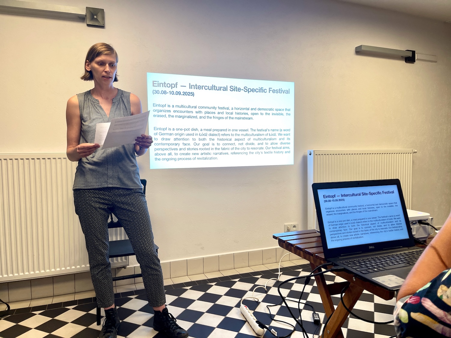 Eintopf—a multicultural site-specific festival (August/September 2025 1st edition with German artists, August/September 2026 2nd edition with Ukrainian artists). At the historical moment in which we are, when nationalist and separatist movements are growing, black-and-white narratives, divisions, populism, authoritarianism, violence, aggression and war are strengthening, walls are being built on borders, we want to refer to what we believe is most important and what unites us, not divides us: closeness, relationship, community. We want to create an artistic Polish-German-Ukrainian meeting in a city that has been marked by a difficult history of wars and partitions. A horizontal perspective is important to us, in which the voices of those who are on the peripheries, margins, edges will be heard.